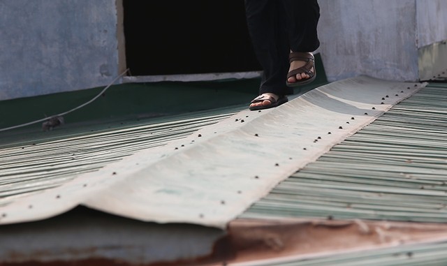 Lối đi chỉ là những tấm tôn mỏng được lợp lên mái nhà tái định cư