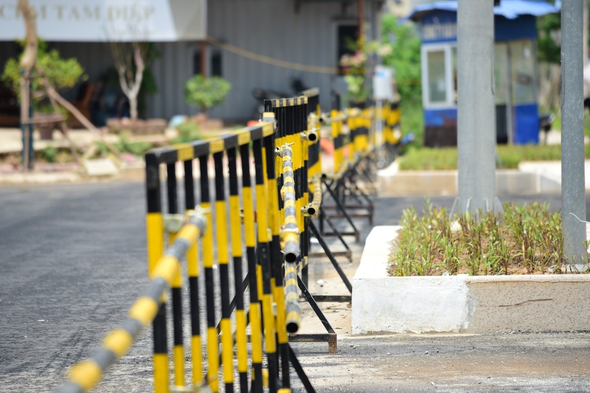 Rào chắn kín đường và chốt bảo vệ tại điểm giao giữa đường Nguyễn Văn Huyên kéo dài và đường 40m thuộc khu đô thị Tây Hồ Tây.