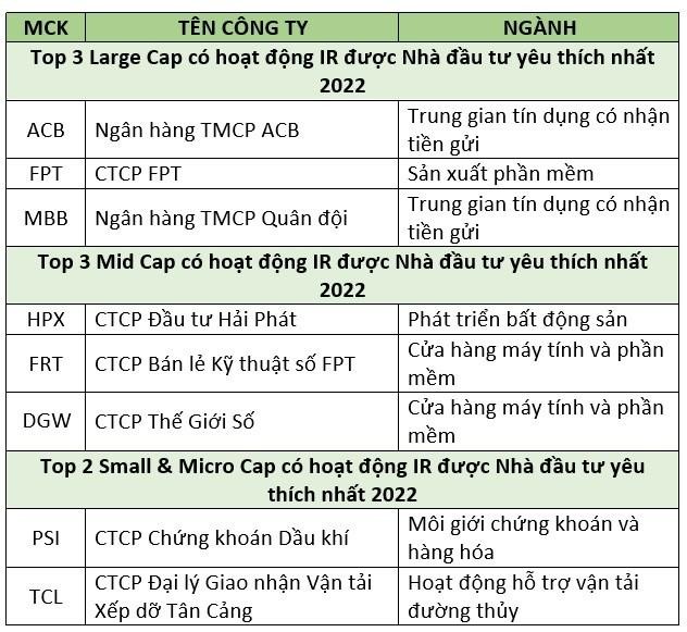 Kết quả bình chọn Top 3 IR Awards 2022 như sau: