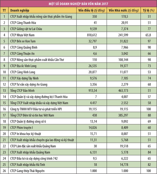 Theo kế hoạch, danh mục bán vốn năm 2017 của SCIC có 114 doanh nghiệp sau hiệu chỉnh, bổ sung (theo Công văn số 10890/BTC-TCDN ngày 15/8/2017 của Bộ Tài chính).