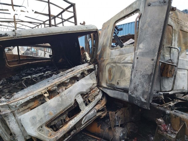 Tuy nhiên, cả 2 chiếc xe đã bị cháy rụi. Toàn bộ hàng hóa trên 2 xe gồm đồ gỗ nội thất và hoa quả cũng bị cháy hư hỏng.