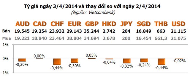 Giá USD tự do hôm nay giảm 10 đồng ở giá mua xuống còn 21.090 đồng/USD; giá bán giữ nguyên mức 21.110 đồng/USD. Giá USD do Vietcombank niêm yết giảm 5 đồng xuống còn 21.075 - 21.115 đồng/USD, thấp nhất kể từ ngày 27/1/2014.
