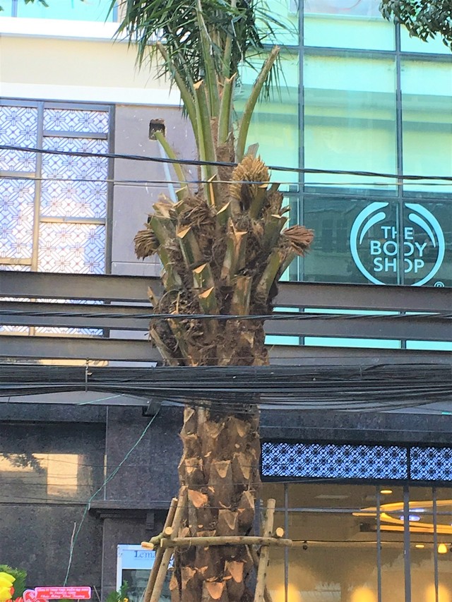 (ĐTCK) Những ngày gần đây, tại số 117 Nguyễn Đình Chiểu, quận 3, TP.HCM xuất hiện hàng cây cọ dưới đường dây cáp điện viễn thông và lưới điện thế của Thành Phố. Hàng cọ này do chủ đầu tư dự án Léman Luxury Apartments trồng.