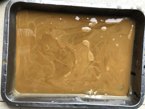 Dầu chưa bị vào nước (trái) và đã bị vào nước, ngả màu cafe sữa (phải). Ảnh: Nguyễn Phan Anh.