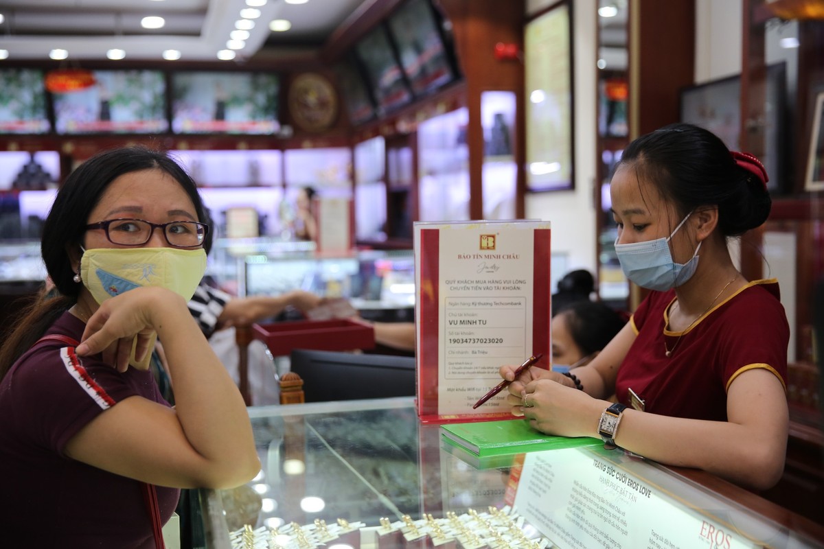 Theo ghi nhận của phóng viên, có một cửa hàng vàng trên phố Trần Nhân Tông chỉ nhận mua vào 1 đến 2 chỉ vàng vì đã sau 17h chiều nhưng tại một cửa hàng khác trên phố Phan Đình Phùng cũng cùng hệ thống cửa hàng nói trên vẫn tiếp nhận khách có nhu cầu bán số lượng lớn.