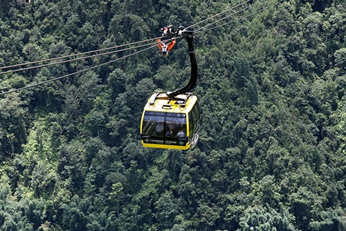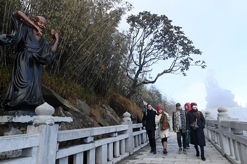 Hành trình du xuân nơi miền Tây Bắc được bắt đầu bằng cáp treo. Băng qua những triền rừng xanh ngắt, thấy lấp ló những đốm đỗ quyên vàng, đỏ bắt đầu nở. Xuyên qua những tầng mây, sẽ thấy những góc mái cong cong ẩn hiện trong mây ngàn gió núi, kỳ vĩ. Bước tới miền đất của những sơn tự này, du khách ngỡ ngàng như vừa đặt chân đến chốn bồng lai tiên cảnh.