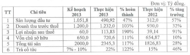 Tại BCTC hợp nhất 2013 chưa kiểm toán, HDG đạt 1.232 tỷ đồng doanh thu (vượt 3% kế hoạch) và 113,8 tỷ đồng nhuận sau thuế (vượt 90% kế hoạch).