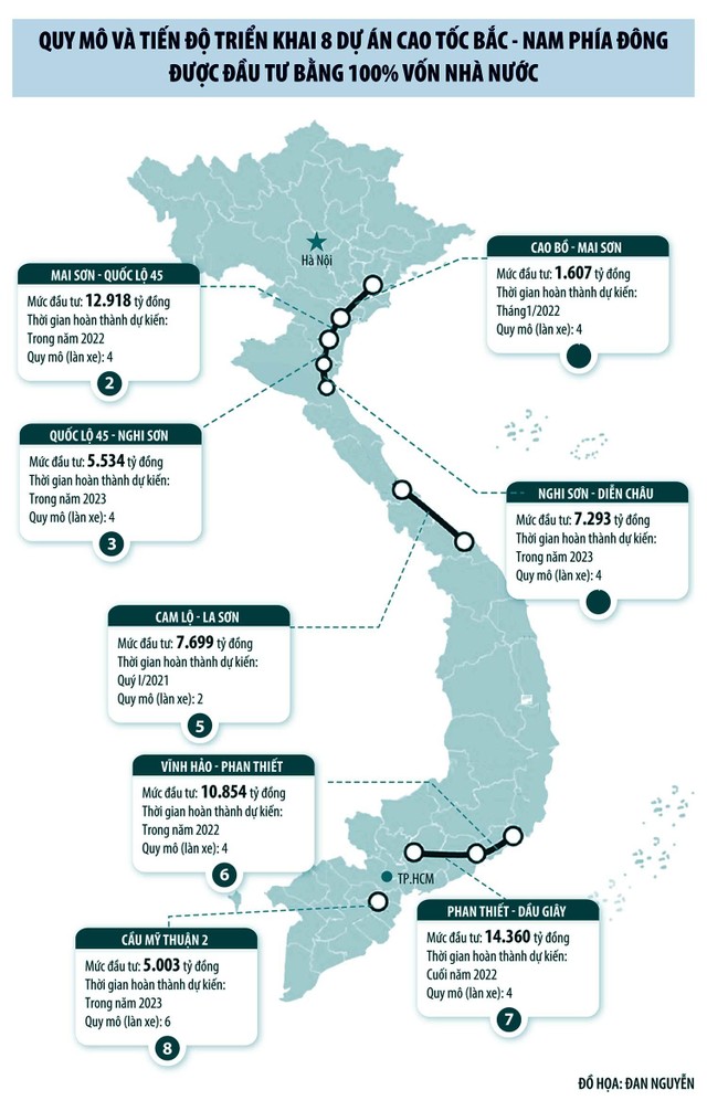 Với mức thu phí dự kiến từ 1.000 đến 1.500 đồng/xe tiêu chuẩn/km, số phí thu được (sau khi trừ các khoản chi tổ chức thu phí) được nộp vào ngân sách nhà nước. Để đảm bảo khách quan, minh bạch, 8 dự án cao tốc Bắc - Nam phía Đông được đầu tư bằng 100% vốn nhà nước sẽ áp dụng công nghệ thu phí điện tử không dừng.