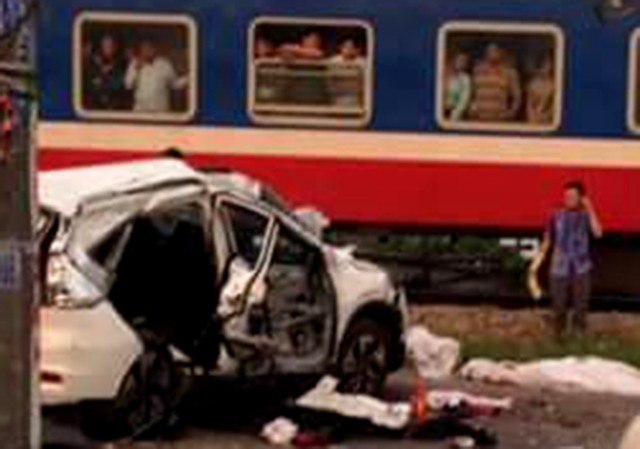 Hiện trường ôtô băng ngang đường sắt làm 5 người chết