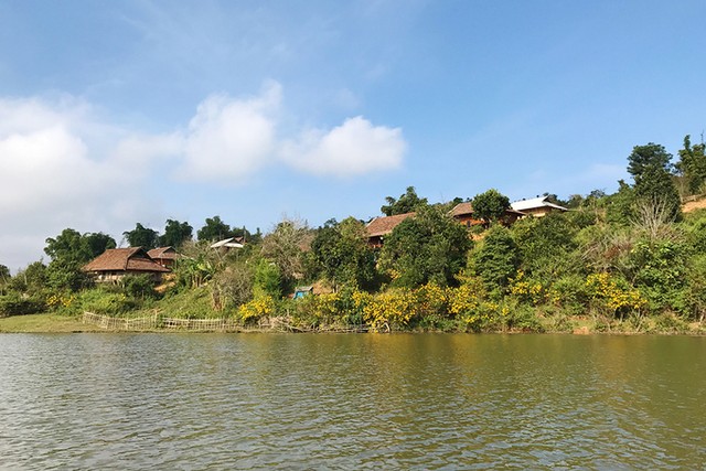 Hoa anh đào Nhật Bản nở rộ giữa lòng hồ ở Điện Biên