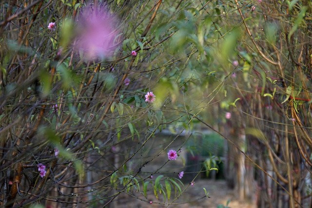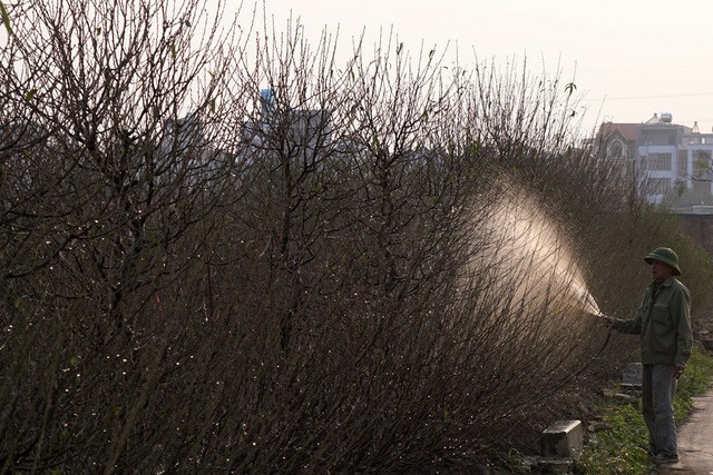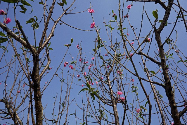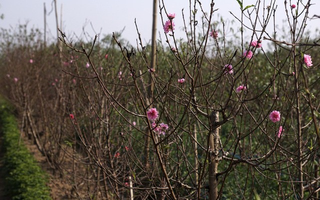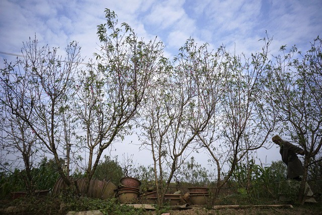 Thời tiết hanh khô, nắng chói chang cả ngày khiến một số cây đào ở Nhật Tân (Hà Nội) bắt đầu hé nở. Chưa đến mức nở rộ, song những nụ đào lốm đốm cũng khiến cho cả người trồng và khách vãn cảnh cảm nhận ngày Tết cổ truyền đã đến rất gần.