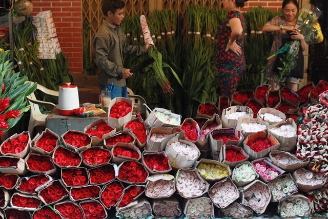 Trong khi đó, hoa hồng do các tỉnh thành khác cung cấp hoặc nhập từ Trung Quốc về có giá thấp hơn, trung bình 10.000 đồng mỗi hoa. Với những loại chất lượng không đẹp, hoa đông lạnh giá chỉ từ 200.000-300.000 đồng/bó nhưng sức mua không cao.