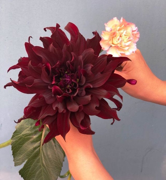 Bông hoa thược dược màu đỏ nhung “khổng lồ” to bằng bàn tay