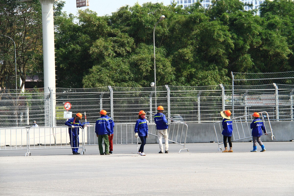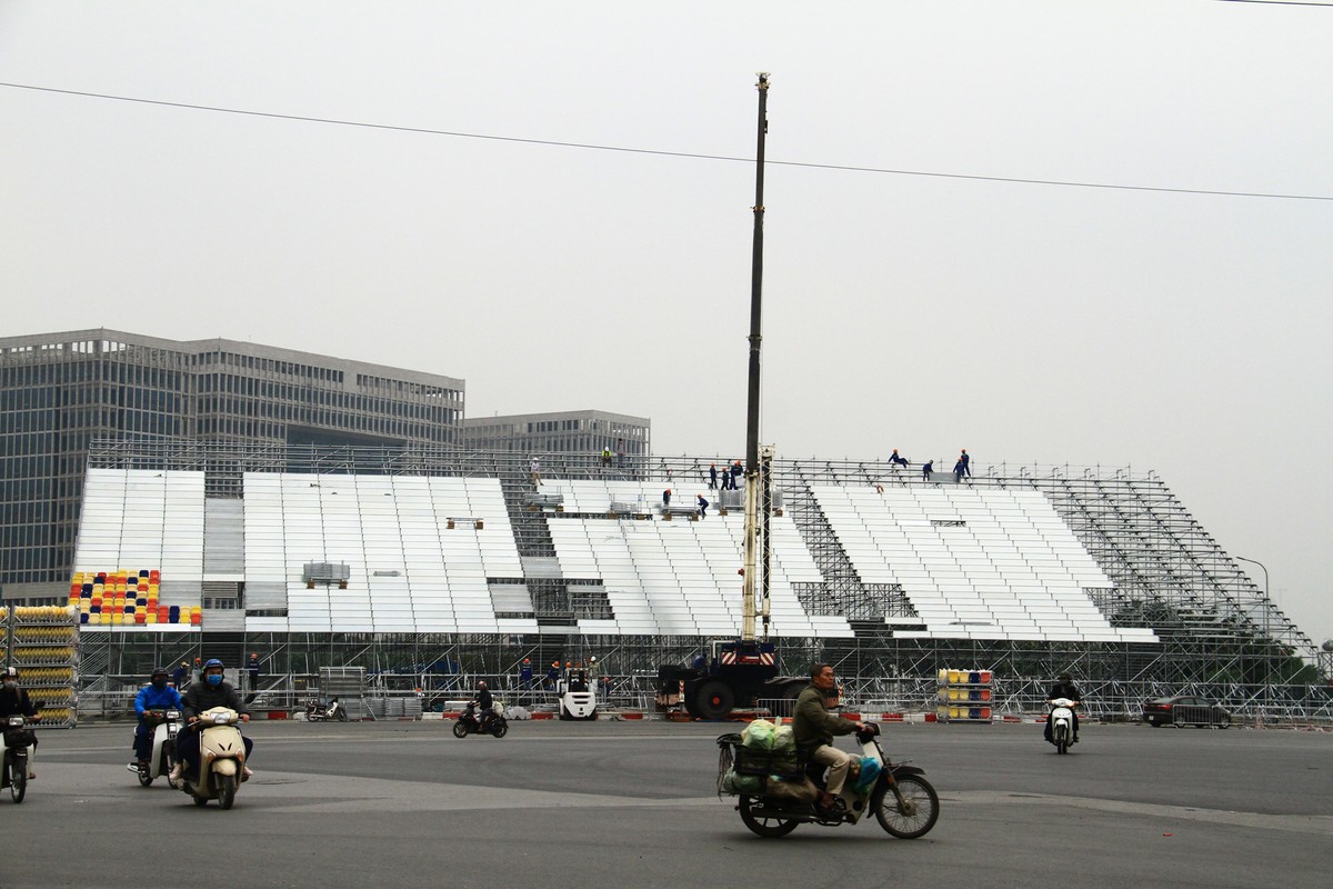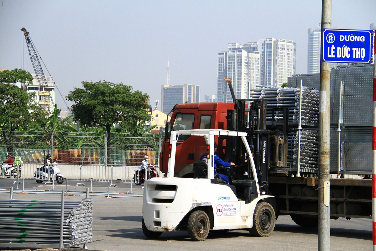 Một vài ngày trước đó, các nhà thầu vẫn thi công, lắp đặt thêm các khán đài trên đường Lê Đức Thọ.