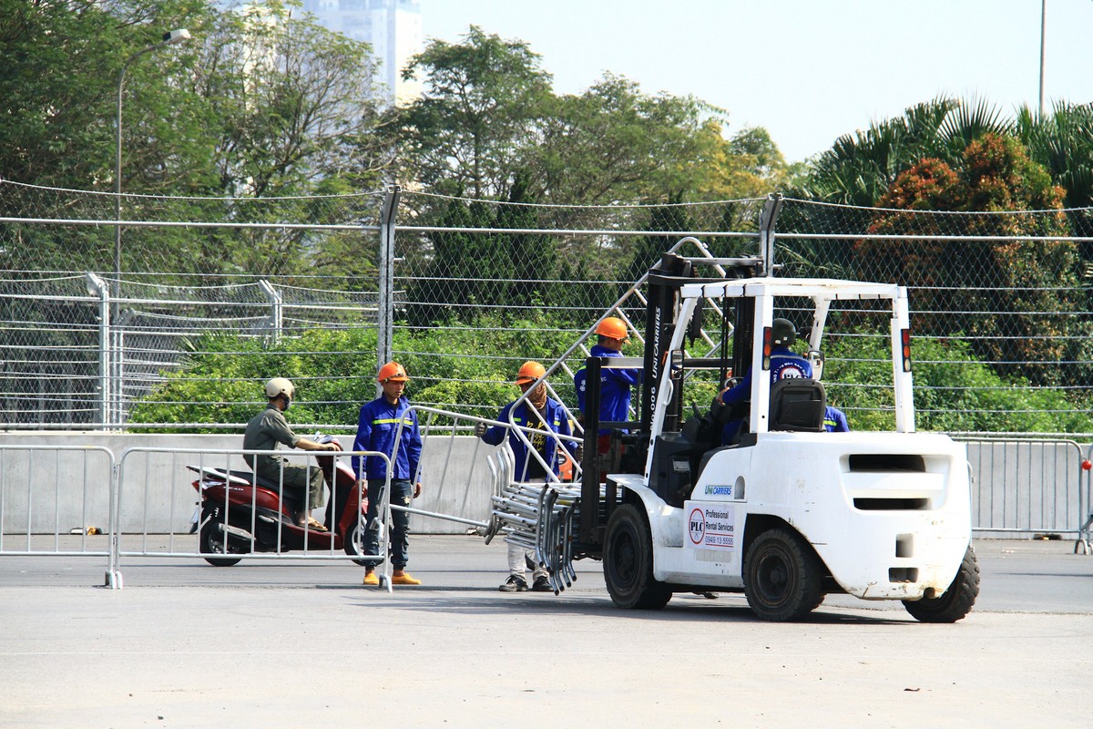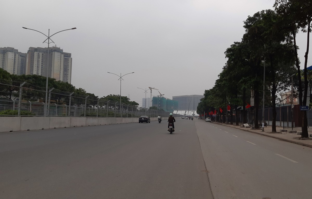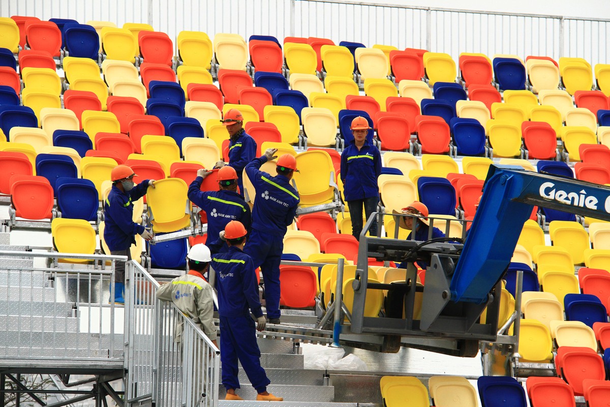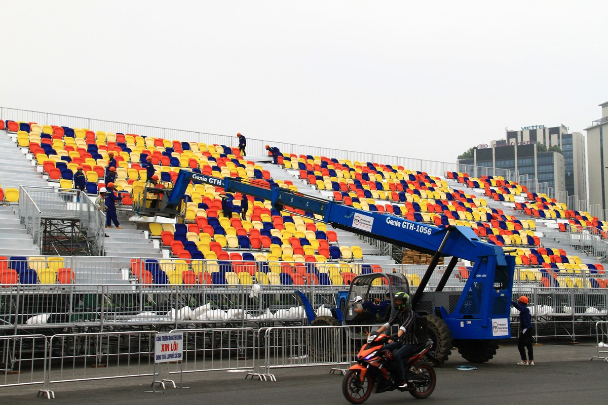 Một vài ngày trước đó, các nhà thầu vẫn thi công, lắp đặt thêm các khán đài trên đường Lê Đức Thọ.