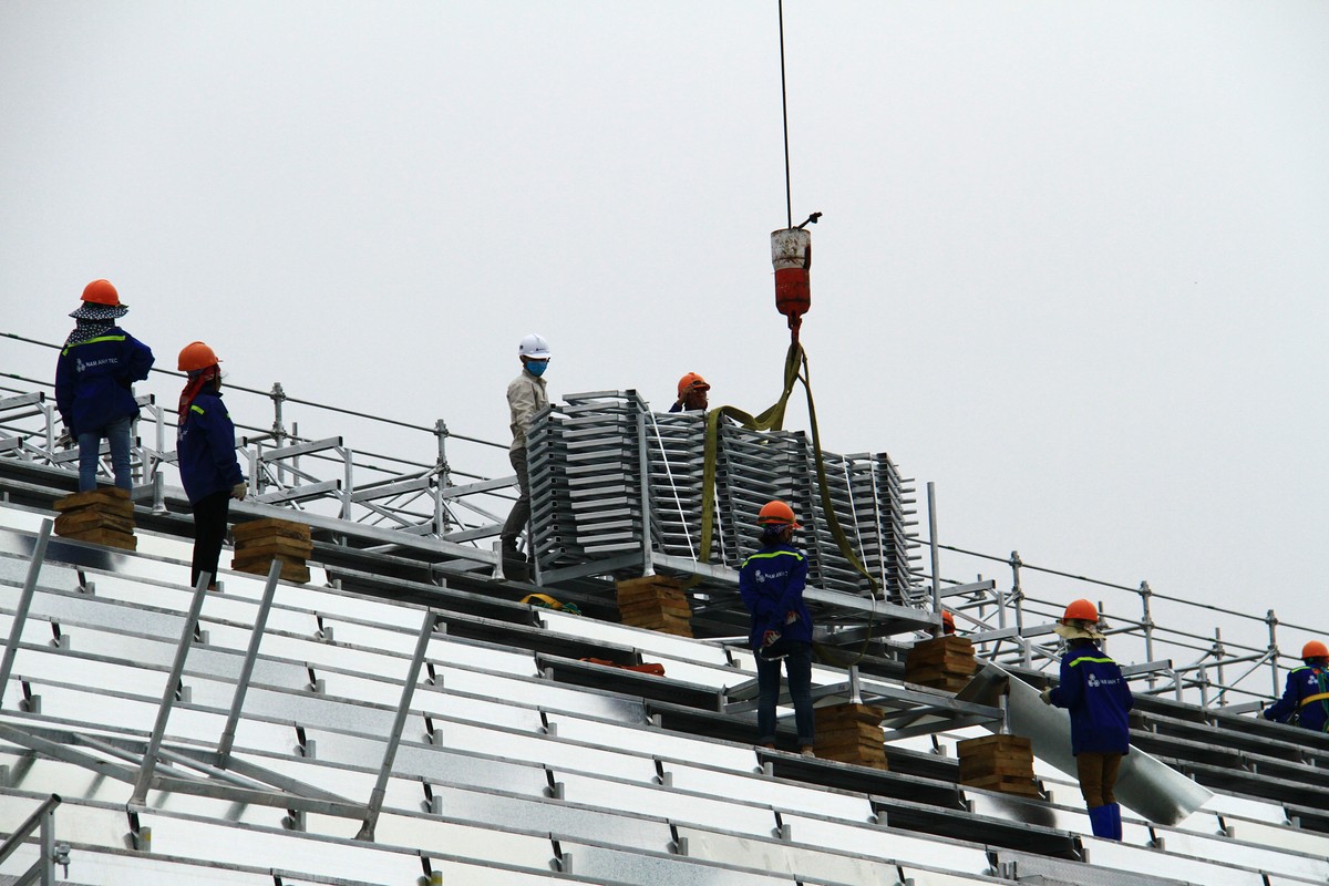 Khán đái gần Cung Hữu nghị Việt - Trung vẫn đang được thi công khẩn trương.