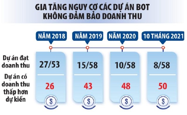 Lãnh đạo Bộ GTVT cho biết, những bất cập, vướng mắc tại các dự án BOT nói trên đã gây ra các hệ lụy xấu: doanh nghiệp BOT không có nguồn để trả nợ ngân hàng; không có kinh phí để thực hiện bảo trì..., dẫn đến phát sinh nợ xấu, phải cơ cấu lại thời hạn trả nợ, chuyển nhóm nợ, ảnh hưởng đến chất lượng tín dụng, an toàn hệ thống tín dụng và không khơi thông được nguồn vốn để triển khai các dự án đầu tư kết cấu hạ tầng giao thông theo phương thức PPP.