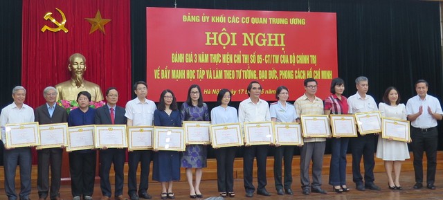 Dịp này, Đảng ủy Khối cơ quan Trung ương đã trao Bằng khen cho các Đảng bộ, cơ sở Đảng có thành tích xuất sắc trong 3 năm thực hiện Chỉ thị số 05-CT/TW ngày 15/5/2016 của Bộ Chính trị về đẩy mạnh học tập và làm theo tư tưởng, đạo đức, phong cách Hồ Chí Minh.