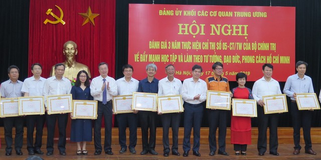 Trong không khí chào mừng Kỷ niệm 129 năm Ngày sinh Chủ tịch Hồ Chí Minh (19/5/1890-19/5/2019); Hướng đến Kỷ niệm 50 năm thực hiện Di chúc của Người, Ban Thường vụ Đảng uỷ Khối các cơ quan Trung ương tổ chức Hội nghị đánh giá 3 năm thực hiện Chỉ thị số 05-CT/TW ngày 15/5/2016 của Bộ Chính trị về đẩy mạnh học tập và làm theo tư tưởng, đạo đức, phong cách Hồ Chí Minh; biểu dương, khen thưởng các tổ chức đảng tiêu biểu, cá nhân điển hình trong học tập và làm theo tư tưởng, đạo đức, phong cách Hồ Chí Minh.