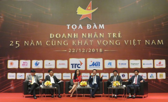 Chiều 22/12, Hội Doanh nhân trẻ Việt Nam tổ chức buổi tọa đàm ”Doanh nhân trẻ - 25 năm cùng khát vọng Việt Nam”. Sự kiện nằm trong chuỗi các hoạt động kỷ niệm 25 năm phong trào doanh nhân trẻ và 15 năm giải thưởng sao Vàng đất Việt diễn ra từ ngày 21 đến 23/12/2018 tại Hà Nội.