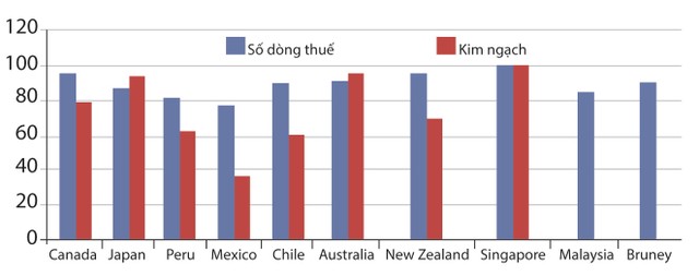 Số dòng thuế được các nước cam kết về 0 khi CPTPP có hiệu lực.