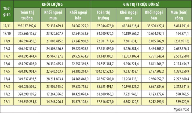 Những điều trên chứng tỏ, dòng vốn ngoại luôn dồi dào và sẵn sàng vào thị trường Việt Nam. Vốn đầu tư gián tiếp (FII) vào Việt Nam trong quý III/2017 đạt 441 triệu USD. Riêng trên Sở Giao dịch chứng khoán TP.HCM (HOSE), trong 11 tháng của năm 2017, khối ngoại đã mua ròng trên 1 tỷ USD. Trong đó, ngành thực phẩm và đồ uống vẫn là ngành dẫn đầu trong việc thu hút vốn ngoại.