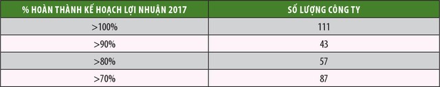 Về kết quả kinh doanh của các doanh nghiệp niêm yết, thống kê của chúng tôi tính đến hết quý III/2017 cho thấy, có hơn 100 công ty niêm yết đã hoàn thành kế hoạch lợi nhuận cả năm 2017 và gần 200 công ty đã hoàn thành hơn 70% kế hoạch lợi nhuận cả năm.