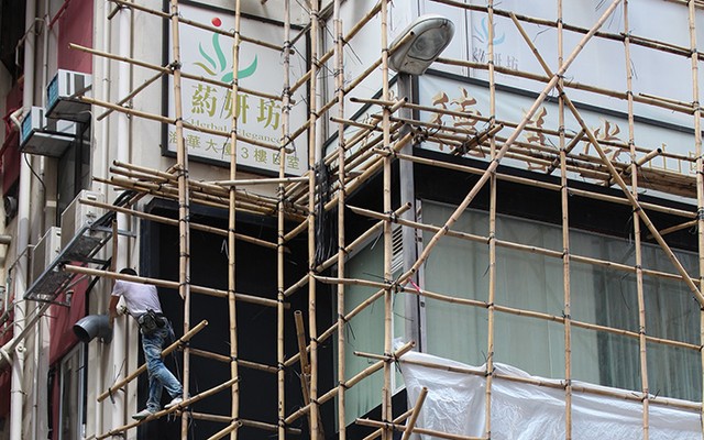 (ĐTCK) Tại Việt Nam, giàn giáo tre có lẽ chỉ còn tại các địa điểm khai thác tổ yến với những kỹ thuật “đi dây”, “đi dăng” và “đi bộ” trên giàn mà không phải thợ hái yến nào cũng thành thục. Dàn giáo tre có một nhược điểm là độ chịu tải không lớn, nên đang dần mai một tại các công trình và được thay thế bởi những công nghệ giàn giáo hiện đại hơn. Tuy nhiên tại Hồng Kông, dàn giáo làm bằng tre vẫn được lưu giữ và nâng tầm như một nghệ thuật trong xây dựng, có thể dễ dàng tìm gặp ở mọi công trình trên hòn đảo tấp nập này. (Tuấn Khánh thực hiện).