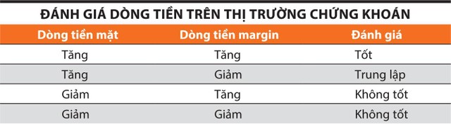 Với dòng tiền tăng lên không đến từ tiền tươi, mà đến từ tiền margin (tiền vay) thì tính bền vững sẽ không cao, vì tiền margin là dòng tiền nóng, mang tính đầu cơ ngắn hạn, đồng thời có “2 mặt như một con dao 2 lưỡi”. Có những cuộc khủng hoảng kinh tế thế giới diễn ra vì lượng tiền vay quá lớn của một kênh đầu tư nào đó. Nhưng nếu thị trường có được sự hợp lưu của các dòng tiền (xem bảng) thì đó là xu hướng tốt.