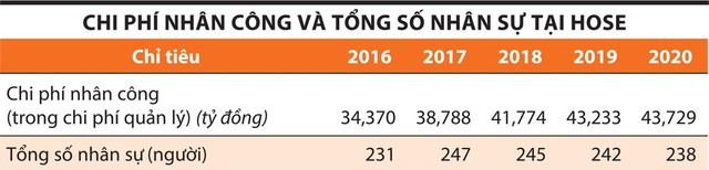 Tính chung cả năm 2020, HOSE ghi nhận lợi nhuận trước thuế 691,1 tỷ đồng, tăng 45,86% so với năm 2019; lợi nhuận sau thuế tăng tương ứng, đạt 552,84 tỷ đồng; hệ số sinh lời trên vốn chủ sở hữu và tổng tài sản bình quân trong năm 2020 lần lượt là 32,2% và 20,3%.