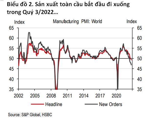 Rõ ràng, theo HSBC, nguyên nhân chính đến từ lĩnh vực điện tử vốn chiếm khoảng 35% tổng kim ngạch xuất khẩu của Việt Nam. Đơn hàng điện tử mới trên thế giới đã bắt đầu giảm mạnh từ nửa cuối năm 2022, ảnh hưởng đến lĩnh vực điện tử tiêu dùng nhiều hơn là sản phẩm công nghiệp. Tác động xảy ra trên diện rộng tại ba điểm đến chính của xuất khẩu Việt Nam là Mỹ, Trung Quốc đại lục và châu Âu. Mặc dù vậy, các lĩnh vực xuất khẩu khác của Việt Nam lại có xu hướng bị ảnh hưởng bởi suy thoái kinh tế đặc biệt là ở Mỹ.