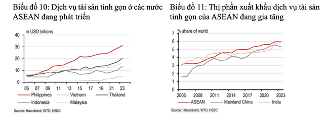 Với thị phần dịch vụ tài sản tinh gọn gia tăng, các chuyên gia của HSBC cho rằng ASEAN, cũng giống như Ấn Độ, đang ở vị thế có khả năng đón đầu làn sóng xuất khẩu dịch vụ toàn cầu.