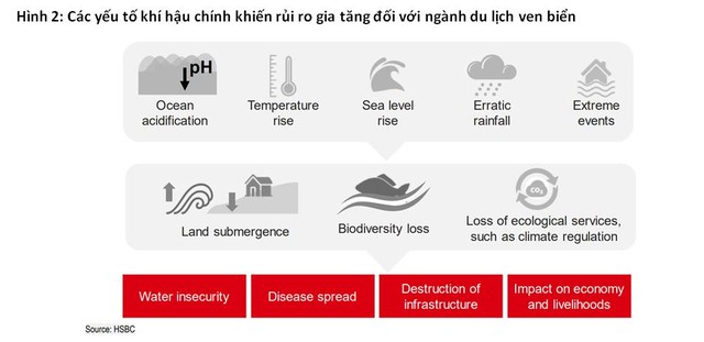 “Mặc dù không có bằng chứng chắc chắn về các khách du lịch phản ứng với những ảnh hưởng của biến đổi khí hậu nhưng nhiều điểm du lịch nổi tiếng có thể sẽ mất đi sức hấp dẫn, tạo cơ hội tỏa sáng cho một số điểm đến ít được biết đến hơn. Sự thay đổi trong tâm lý của khách du lịch có thể sẽ có tác động đáng kể đến các nền kinh tế phụ thuộc nhiều vào thu nhập từ du lịch”, Báo cáo HSBC nhận định.