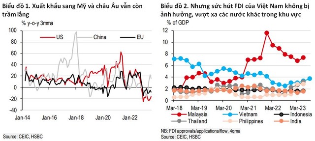 Điều khiến các chuyên gia kinh tế HSBC ngạc nhiên nhất chính là sự phục hồi trong lĩnh vực sản xuất của Việt Nam. Mặc dù vẫn còn quá sớm để có thể coi đây là một sự phục hồi đáng kể trong chu kỳ thương mại toàn cầu, lĩnh vực thương mại của Việt Nam gần đây đã ghi nhận sự phục hồi vốn rất cần thiết. Mặc dù một phần là do hiệu ứng cơ sở thấp, xuất khẩu chứng kiến tăng trưởng lần đầu tiên sau hơn 6 tháng, giúp làm dịu tình trạng sụt giảm xuất khẩu nghiêm trọng từ mức hai con số trong 6 tháng đầu năm xuống dưới 2% so với cùng kỳ trong quý III.