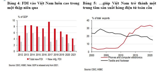 Nói đến những câu chuyện thành công về các nền kinh tế được thúc đẩy bởi FDI, HSBC cho biết, Việt Nam là một ví dụ nổi bật.