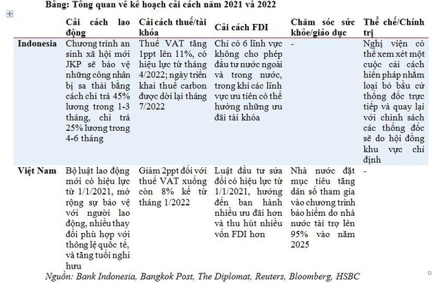 Theo HSBC, môi trường chính sách FDI tại ASEAN đã cải thiện sâu sắc trong những năm qua khi nhiều chính sách ưu đãi được ban hành. Đặc biệt, Indonesia và Việt Nam đã có những thay đổi lớn nhất, bao gồm cải thiện cơ sở hạ tầng, nới lỏng các hạn chế đầu tư, quản lý tài khóa tốt hơn…