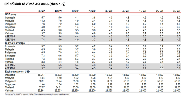 HSBC cho rằng, các nền kinh tế ASEAN có khả năng áp dụng chính sách tiền tệ theo hướng hạn chế là những nền kinh tế đã chứng kiến tỷ lệ tiết kiệm trên toàn nền kinh tế của họ giảm trong giai đoạn từ năm 2020 đến năm 2022, ngoại trừ Singapore. Việc giữ lãi suất cao sẽ là cần thiết để đưa tỷ lệ tiết kiệm trở lại mức trước đại dịch, nhằm thu hẹp thâm hụt tài khoản vãng lai và thúc đẩy ổn định kinh tế vĩ mô - nhưng phải trả giá bằng hấp thu trong nước thấp đi, do khả năng chi tiêu tiêu dùng giảm, khi thanh khoản bị vắt kiệt trong nền kinh tế.