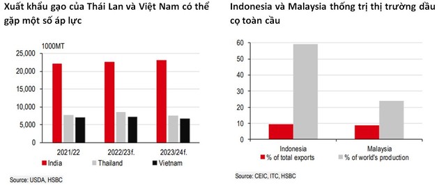 “Tuy nhiên, phần lớn khu vực này vẫn có mức độ phụ thuộc cao vào nhập khẩu ngũ cốc. Hai trường hợp ngoại lệ trong ASEAN là Thái Lan và Việt Nam, hai nước xuất khẩu gạo lớn thứ hai và thứ ba, cả hai quốc gia này cộng lại chiếm gần 30% thị phần của thế giới, sau Ấn Độ với 40%”, các chuyên gia HSBC nhận định.