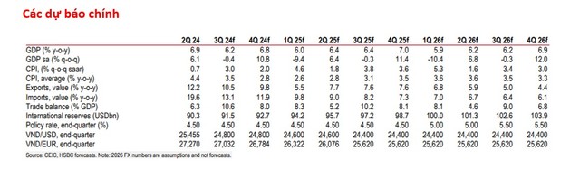 "Xét tất cả những yếu tố nêu trên, chúng tôi duy trì dự báo lạm phát năm 2024 ở mức 3,6%, khá thấp so với mức trần mục tiêu 4,5% của Ngân hàng Nhà nước. Đồng thời, chúng tôi cũng giữ nguyên dự báo lạm phát cho năm 2025 là 3,0%", HSBC nhận định.