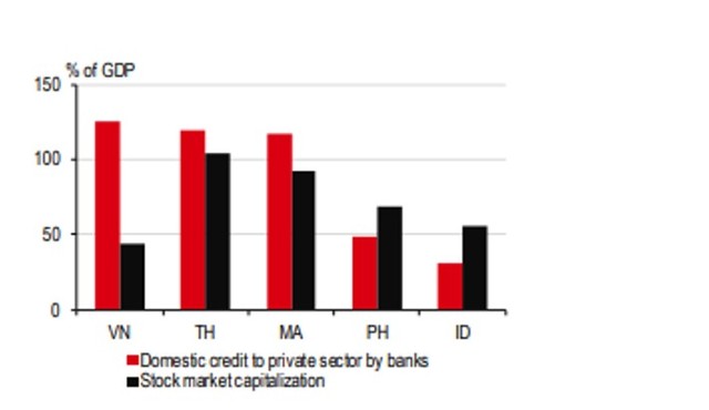 Mặc dù triển vọng IPO gần đây có nhiều cải thiện, thị trường chứng khoán Việt Nam vẫn chưa trở thành nguồn huy động vốn xứng đáng cho các doanh nghiệp như các thị trường khác trong khu vực. Theo Ngân hàng Thế giới, thị trường vốn của Việt Nam chưa bắt kịp những thị trường cùng quy mô khác khiến nền kinh tế phải phụ thuộc nhiều vào tín dụng ngân hàng. Bộ phận Nghiên cứu Đầu tư Toàn cầu HSBC cho biết, tín dụng ngân hàng cho kinh tế tư nhân Việt Nam nhiều hơn gấp đôi vốn hóa thị trường chứng khoán. Sự chênh lệch này khiến Việt Nam khác biệt so với hầu hết các nền kinh tế khác trong ASEAN, và dễ bị tác động hơn bởi lạm phát và lãi suất tăng.
