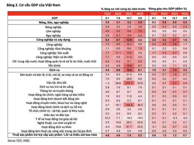 “Mặc dù vậy, Việt Nam không nên ngủ quên trên chiến thắng vì ẩn dưới con số tăng trưởng đẹp đẽ này là những rủi ro tiềm ẩn đối với tăng trưởng của năm 2023”, theo các chuyên gia của HSBC.