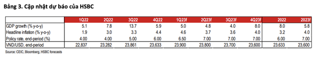 "Chúng tôi kỳ vọng tăng trưởng sẽ chậm lại ở mức 5,8% và lạm phát bình quân tăng lên 4% trong năm 2023", HSBC nhận định.
