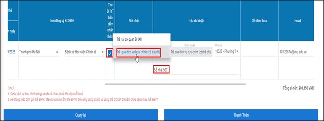 (5) Chọn nơi nhận thẻ BHYT bản giấy: