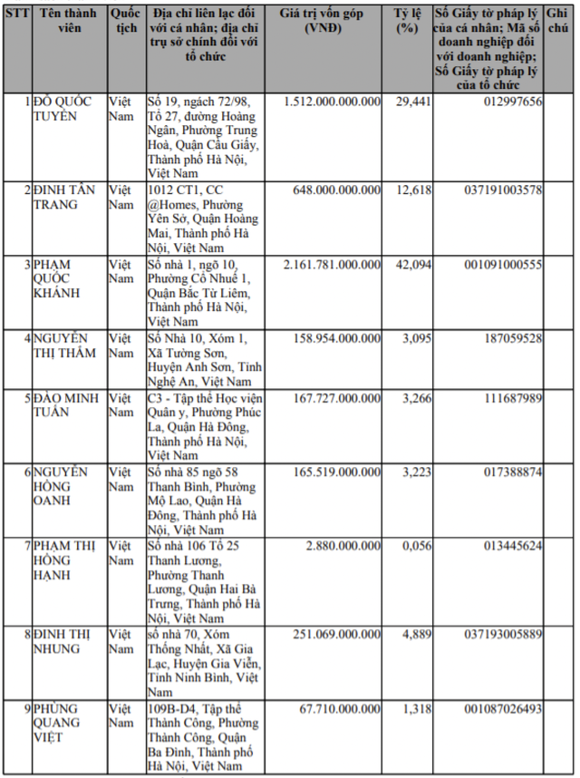Theo đăng ký doanh nghiệp, SVC Holdings mới thành lập tháng 10/2021, vốn điều lệ 2.160 tỷ đồng, người đại diện theo pháp luật là ông Đỗ Quốc Tuyền, Tổng giám đốc Công ty. Ông Tuyền đã góp 1.512 tỷ đồng, tương đương 70% vốn SVC Holdings, còn 30% vốn được góp bởi cá nhân Đinh Tân Trang.