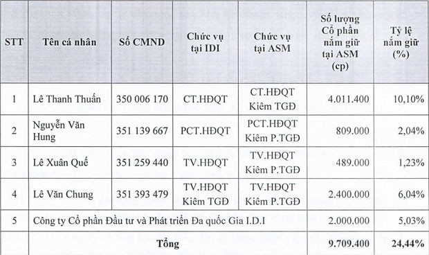 Tỷ lệ sở hữu của IDI và người liên quan tại ASM