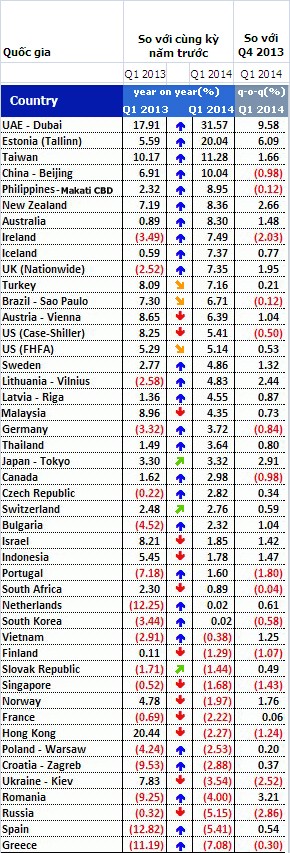 Tốc độ thay đổi giá bất động sản ở các nước (IMF)