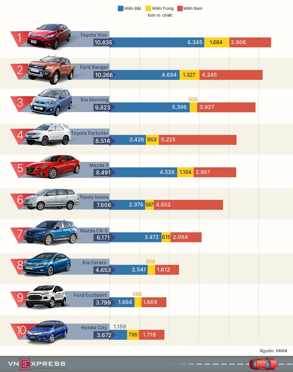 [Infographic] 10 mẫu ôtô người Việt ưa chuộng nhất