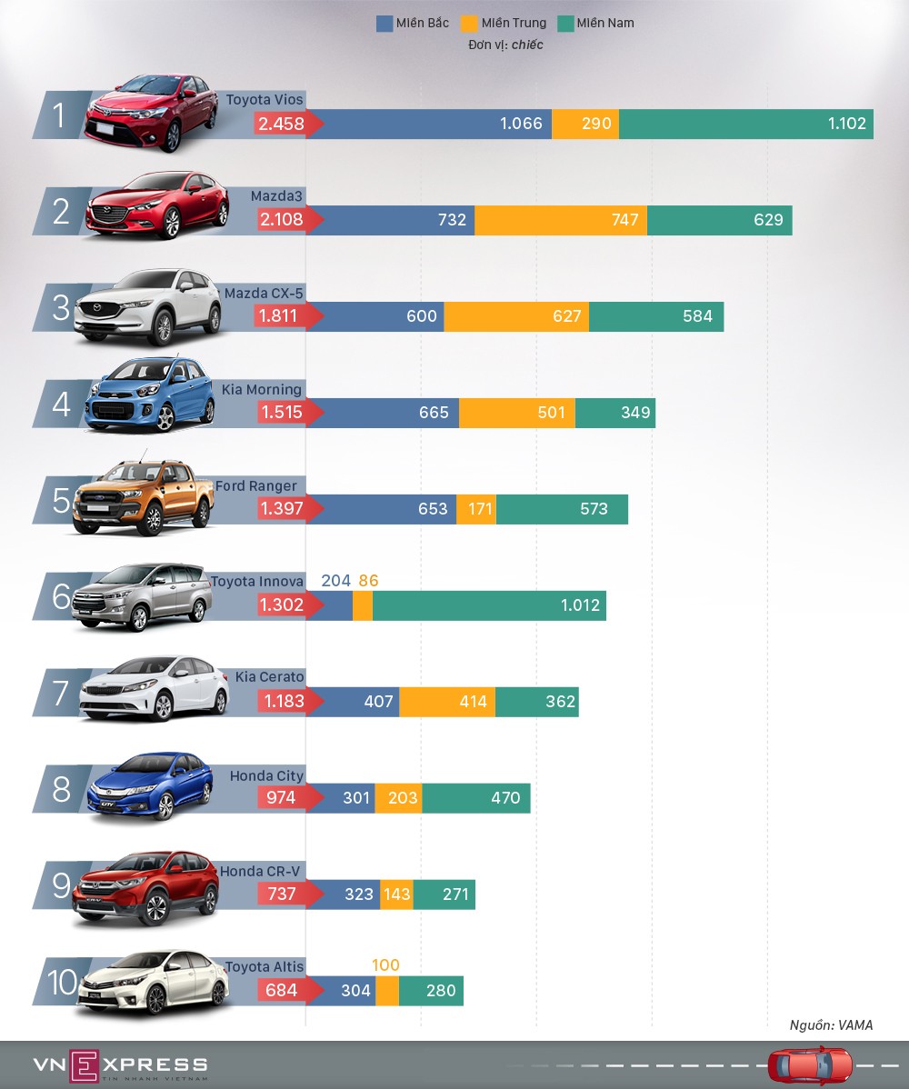 [Infographic] 10 ôtô bán chạy nhất Việt Nam tháng trước Tết