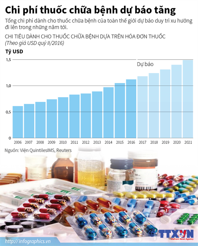 Tổng chi phí dành cho thuốc chữa bệnh của toàn thế giới dự báo duy trì xu hướng đi lên trong những năm tới.