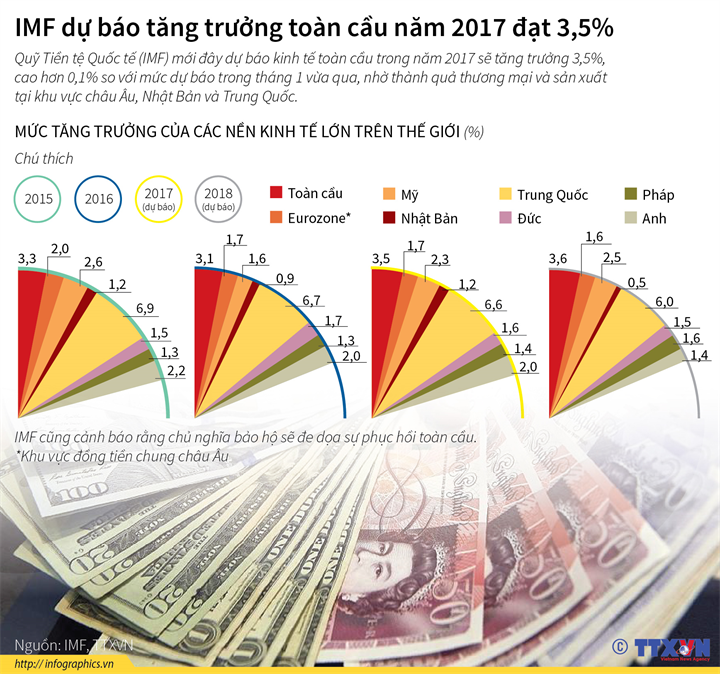 [Infographic] IMF dự báo tăng trưởng toàn cầu năm 2017 đạt 3,5%